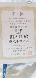 当道場からは田ノ口先生が男子形1部に出場、見事3位入賞を果たしました