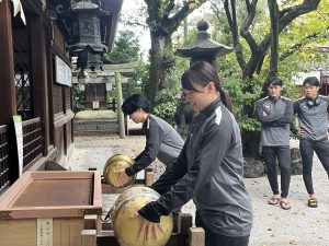 宿泊先が京都であったため大会前日、白峰神宮(スポーツの守護神・武道上達の神)にて必勝祈願!